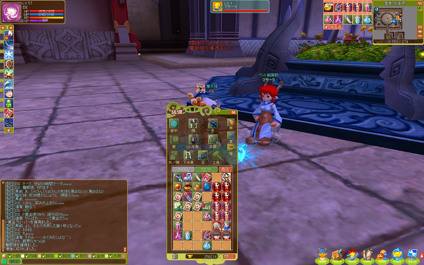 「レベルアップキャンペーンの黄金クロを使って魔眼娘と3級魔爆強襲玉の強化が成功した。」