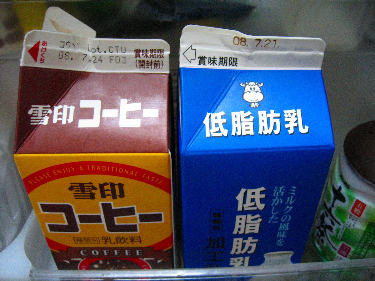 心の友の、雪印コーヒー牛乳とマルナカ低脂肪乳。