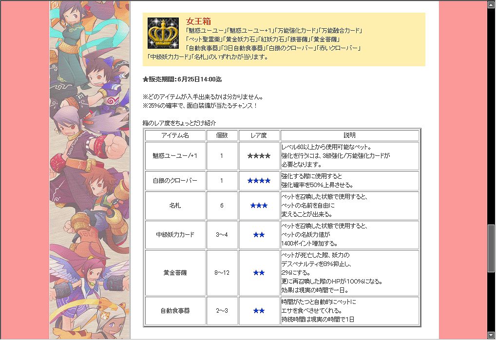 つまり、出しても一定数掃けるだけの高レベルキャラが出来た、ということでしょう。